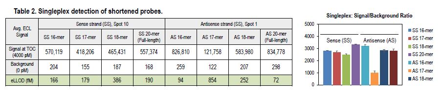 Figure 4. Shortened probes enable ultrasensitive detection in singleplex format. eLLODs are in Table 2.